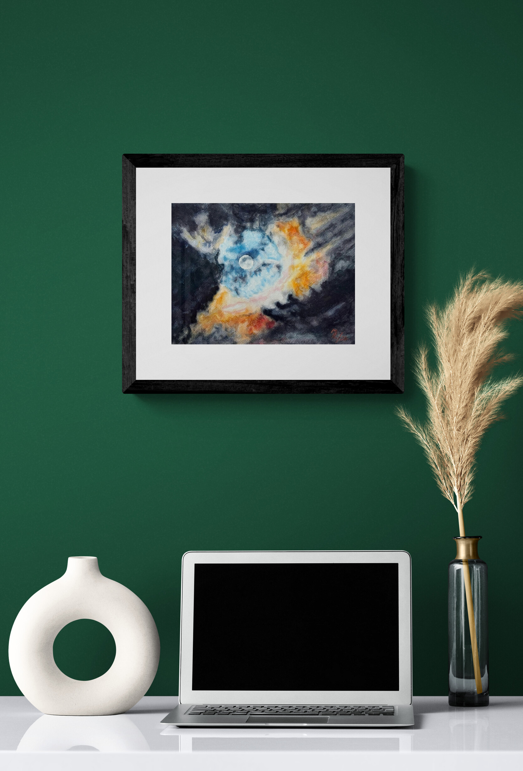 I caught the moon breaking through after a storm had passed, and the sky was still heavy with moisture and shifting clouds. What amazed me was the intensity of color still hanging in the air – fierce oranges and deep crimsons mixing with cool blues around the moon. The light created this churning, almost theatrical quality. I worked with watercolour to capture that sense of movement and drama in the way the pigment blends. Standing there, I felt like I was watching different weather systems collide, each one carrying its own light. These transitional moments don't last long, which makes them worth chasing.